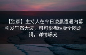 在娱乐圈,几乎每天都有新的话题爆发,而今天凌晨的这一事件,绝对算得上是舆论的焦点。一位备受喜爱的主持...
