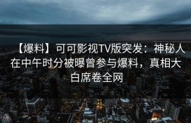 【爆料】可可影视TV版突发:神秘人在中午时分被曝曾参与爆料,真相大白席卷全网